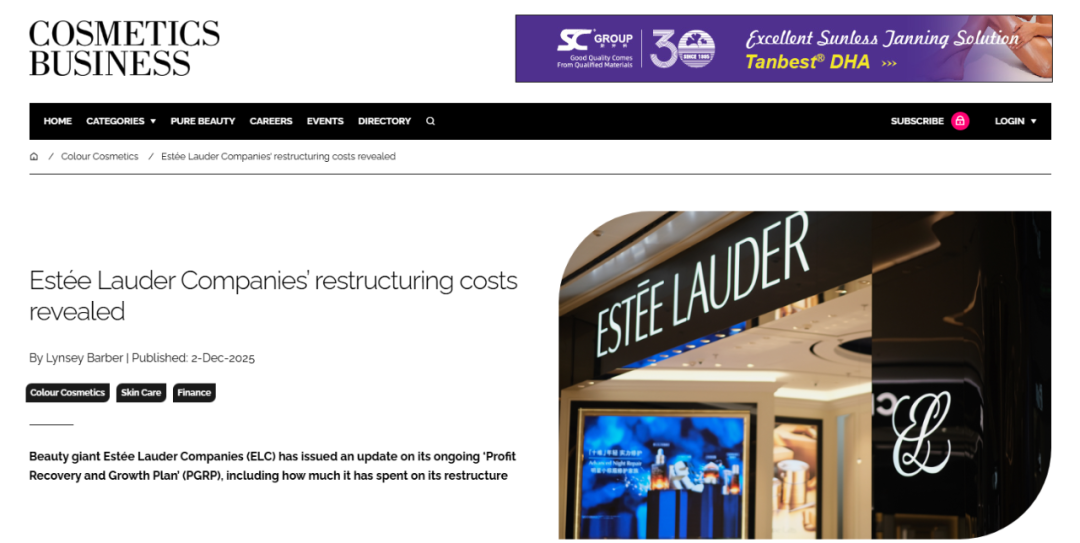 据外媒Cosmetics Business相关报道显示,雅诗兰黛本周发布了其正在进行的“利润恢复与增长计划”(PRGP)的最新进展,包括其在重大业务重组上的支出。